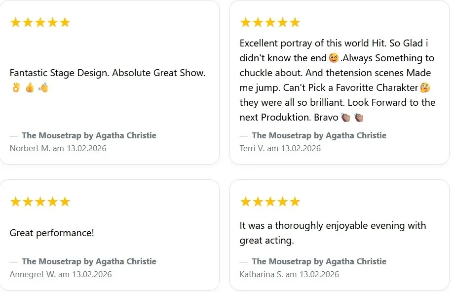 For more than 70 years, Agatha Christie's The Mousetrap has kept millions of people, from every corner of the globe, on the edge of their seats, and it continues to be a sell-out hit of London theatre.
